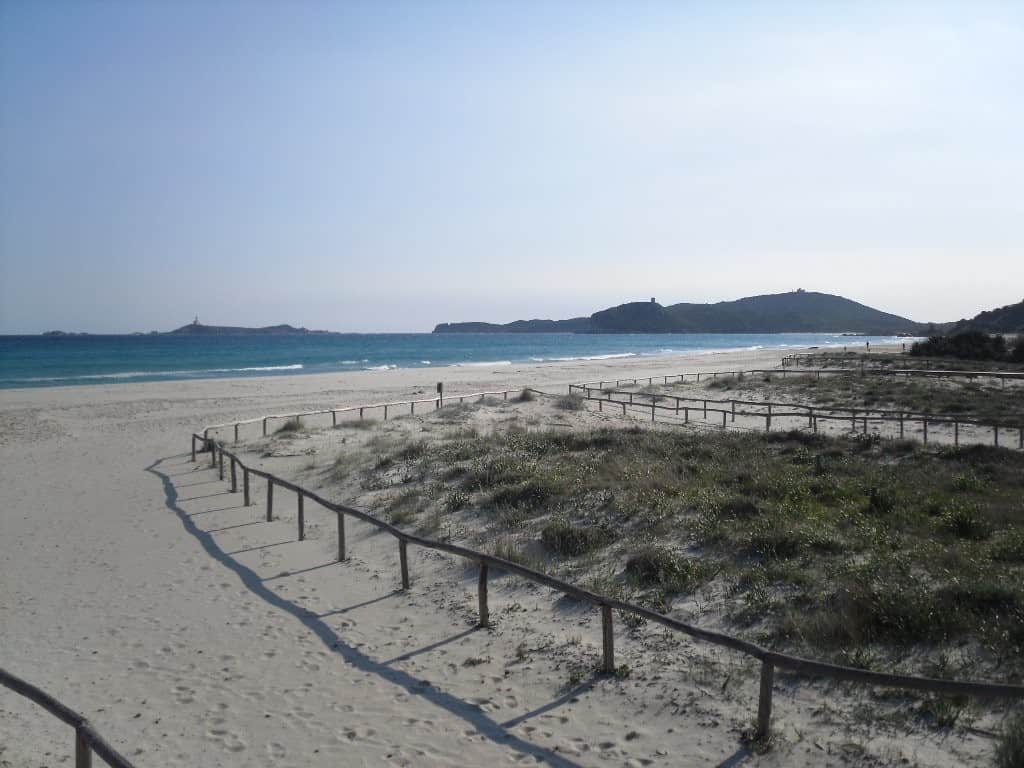 La Spiaggia di Simius è la più vicina al centro abitato – da cui dista infatti circa 1,5 km – ed è caratterizzata da sabbia chiara a grana fina e da un fondale di media profondità.
